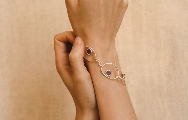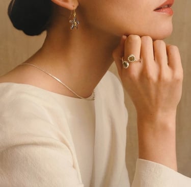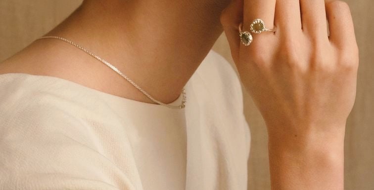 des larmes de perles viennent souligner l'éclat du verre contenu. Dans cette collection, la perle devient une force paisible enracinée dans la matière.